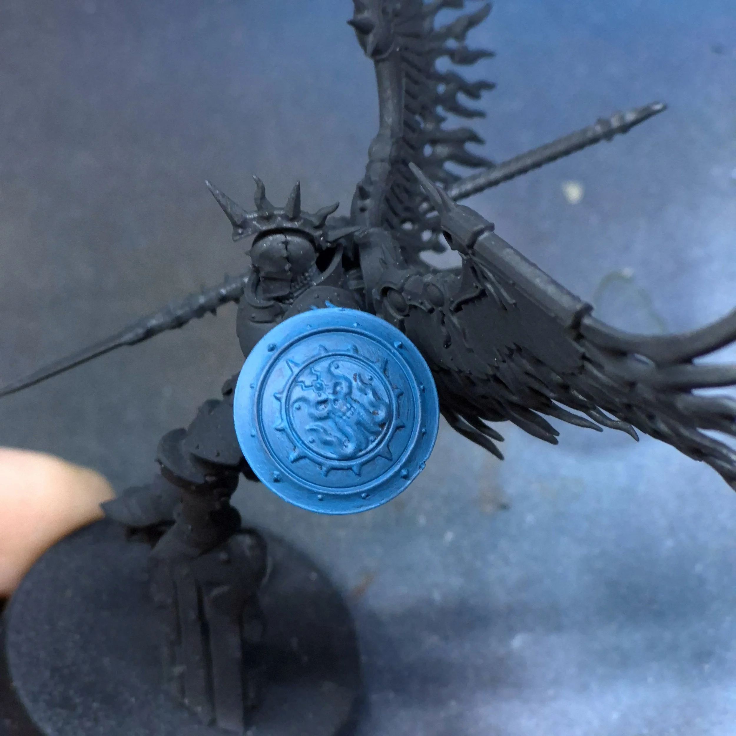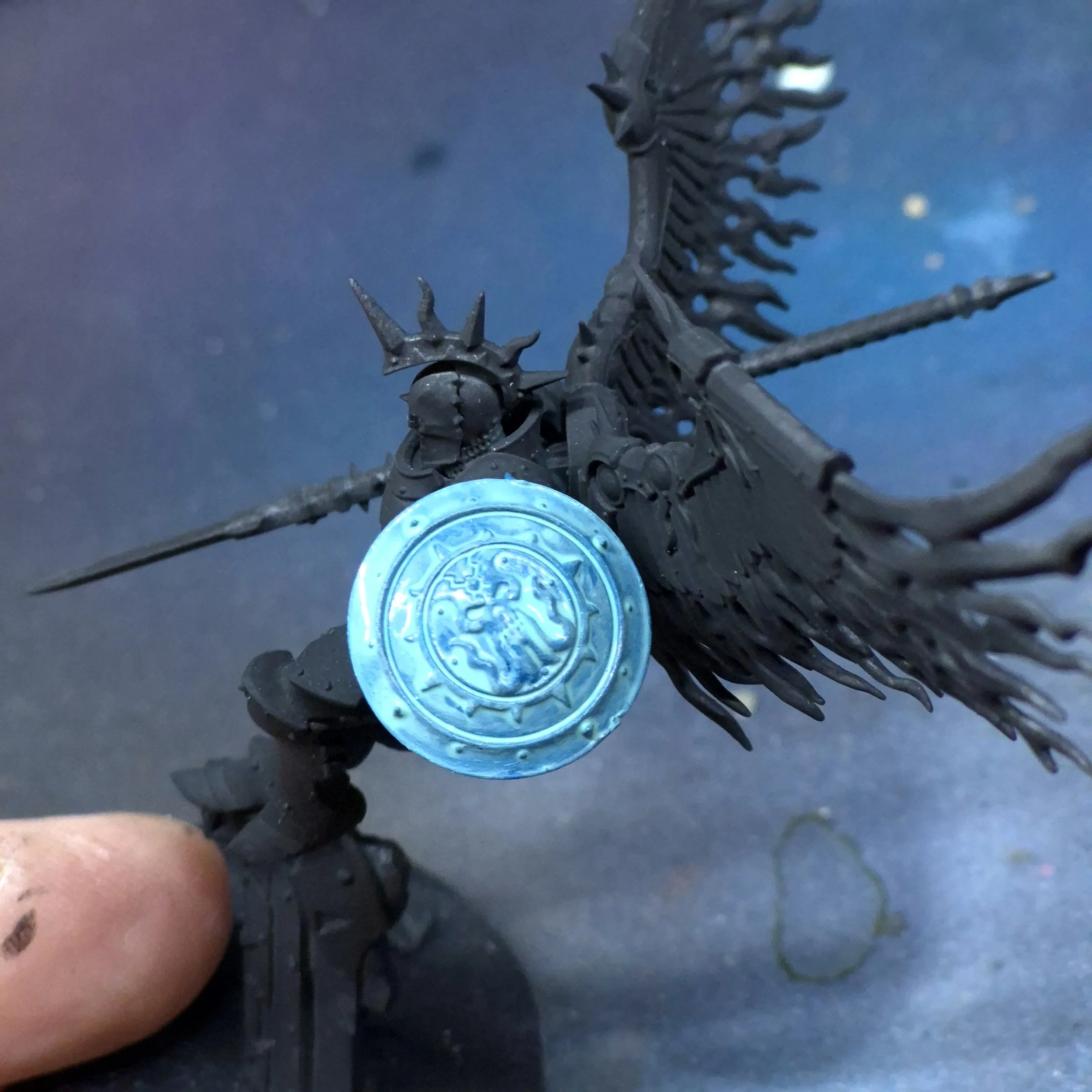 A model you are going to paint - in this case a Stormcasr Prosecutor Shield - Model should be primed in black